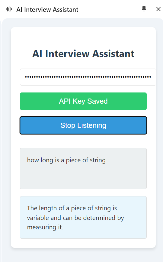 The AI Interview Assistant is a Chrome extension designed to help users during interviews or meetings by providing real-time AI-powered responses to questions. It listens to the audio from the current tab, transcribes the speech, identifies questions, and generates concise answers using OpenAI's GPT model.